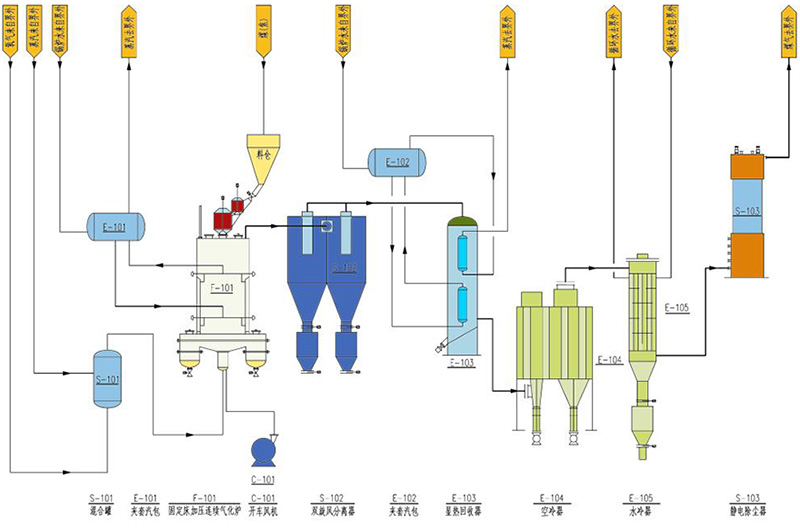 采用雙旋風(fēng)除塵器和靜電除塵技術(shù),采用顯熱回收器、復(fù)合空冷及間歇水冷煤氣冷卻技術(shù),取消常壓氣化的洗氣塔及造氣循環(huán)水處理裝置,無(wú)造氣污水排放。